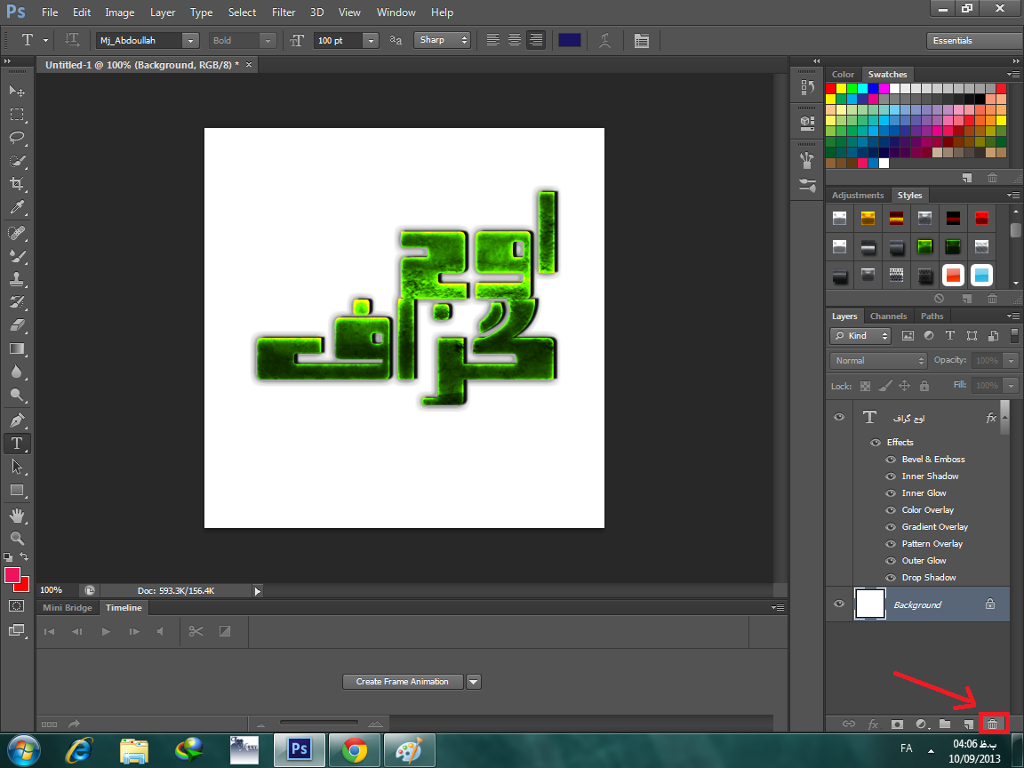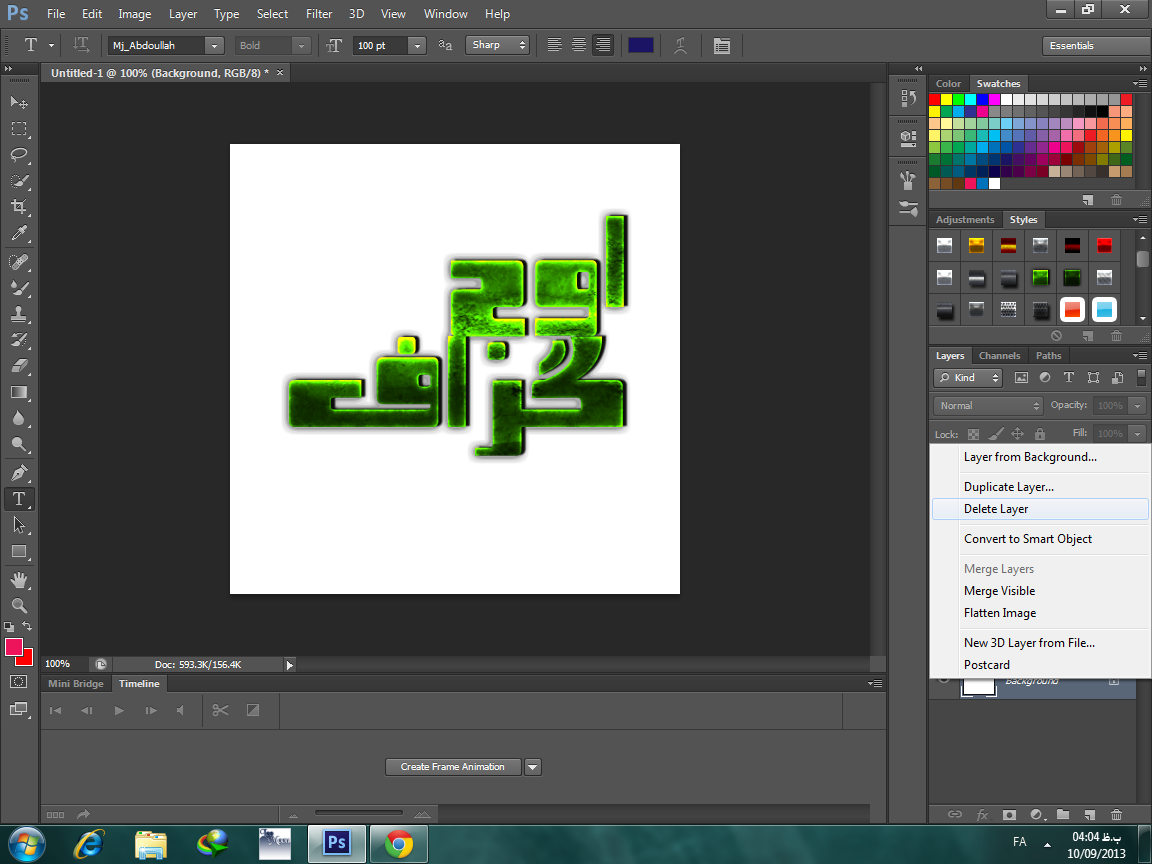 1.با زدن دکمه های Ctrl + N یک پرونده ی جدید ایجاد کنید و متن مورد نظر خود را بنویسید و هر گونه استایال یا چیزی میخواهید در آن به کار ببرید و سپس طبق شکل های زیر پس زمینه را حذف کنید.